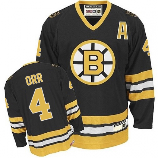Men's CCM Boston Bruins #4 Bobby Orr Premier Black/Gold Throwback NHL Jersey