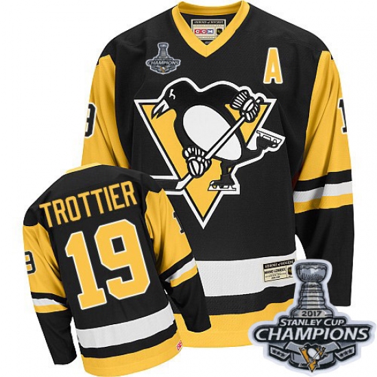 Men's CCM Pittsburgh Penguins #19 Bryan Trottier Authentic Black Throwback 2017 Stanley Cup Champions NHL Jersey