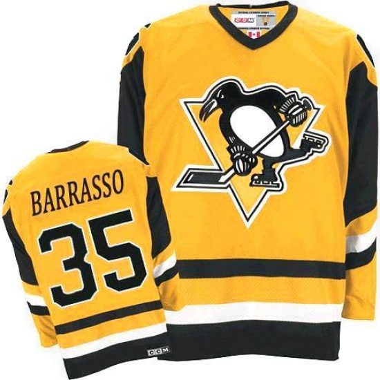 Men's CCM Pittsburgh Penguins #35 Tom Barrasso Premier Yellow Throwback NHL Jersey