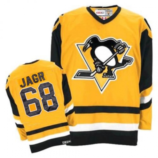 Men's CCM Pittsburgh Penguins #68 Jaromir Jagr Premier Yellow Throwback NHL Jersey