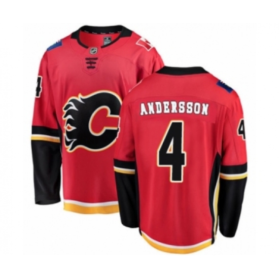 >Men's Calgary Flames #4 Rasmus Andersson Authentic Red Home Fanatics Branded Breakaway NHL Jersey