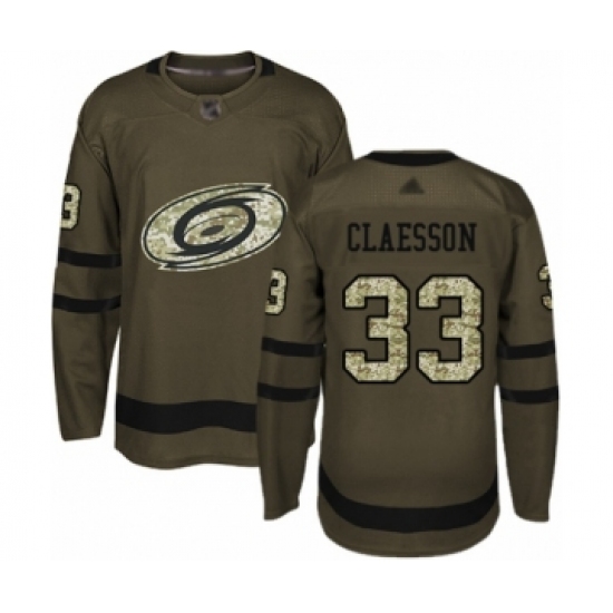 Men's Carolina Hurricanes #33 Fredrik Claesson Authentic Green Salute to Service Hockey Jersey