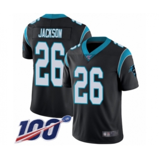 >Men's Carolina Panthers #26 Donte Jackson Black Team Color Vapor Untouchable Limited Player 100th Season Football Jersey