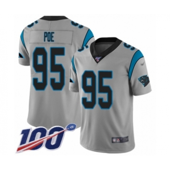 Men's Carolina Panthers #95 Dontari Poe Silver Inverted Legend Limited 100th Season Football Jersey