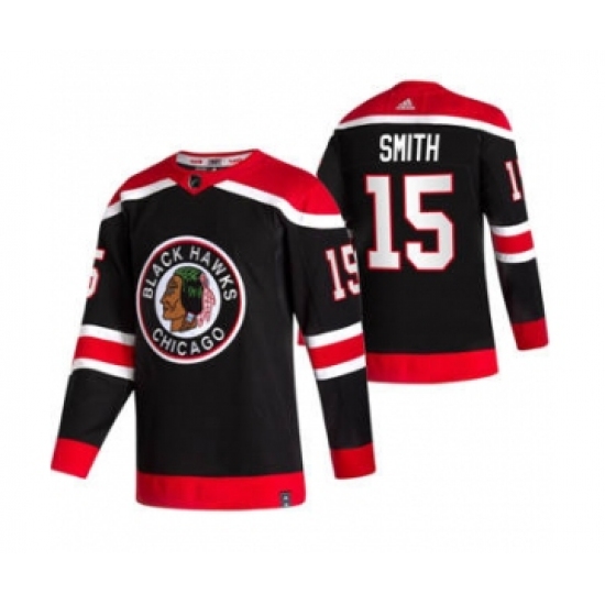 >Men's Chicago Blackhawks #15 Zack Smith Black 2020-21 Reverse Retro Alternate Hockey Jersey