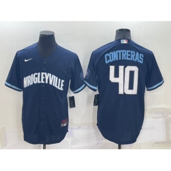 >Men's Chicago Cubs #40 Willson Contreras Navy City Connect Cool Base Stitched Jersey