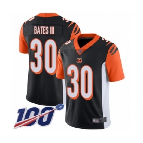 >Men's Cincinnati Bengals #30 Jessie Bates III Black Team Color Vapor Untouchable Limited Player 100th Season Football Jersey