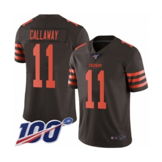 >Men's Cleveland Browns #11 Antonio Callaway Limited Brown Rush Vapor Untouchable 100th Season Football Jersey