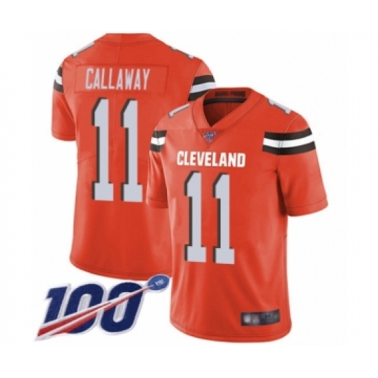 >Men's Cleveland Browns #11 Antonio Callaway Orange Alternate Vapor Untouchable Limited Player 100th Season Football Jersey