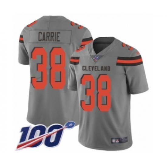 Men's Cleveland Browns #38 T. J. Carrie Limited Gray Inverted Legend 100th Season Football Jersey