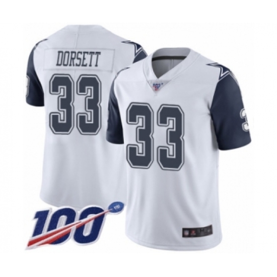 >Men's Dallas Cowboys #33 Tony Dorsett Limited White Rush Vapor Untouchable 100th Season Football Jersey