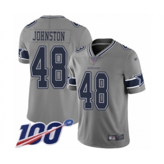 Men's Dallas Cowboys #48 Daryl Johnston Limited Gray Inverted Legend 100th Season Football Jersey