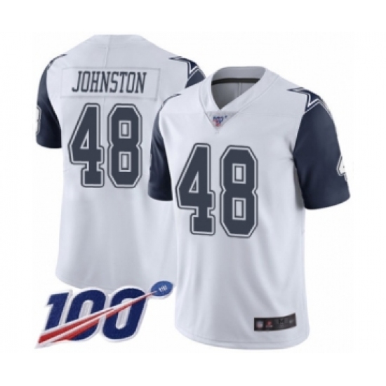 >Men's Dallas Cowboys #48 Daryl Johnston Limited White Rush Vapor Untouchable 100th Season Football Jersey