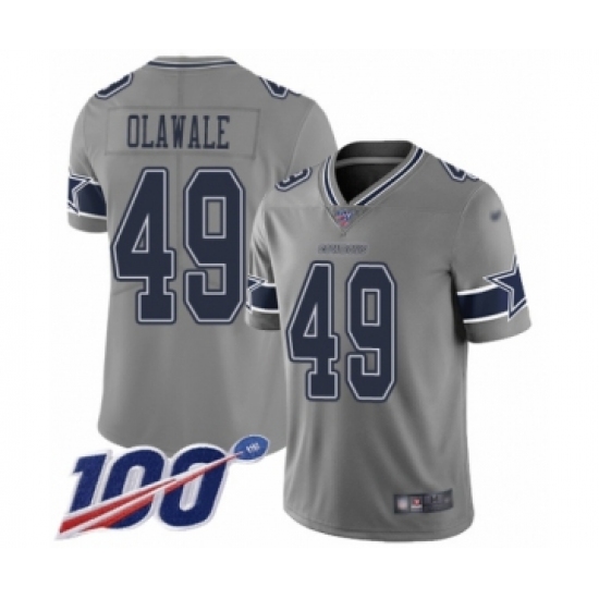 >Men's Dallas Cowboys #49 Jamize Olawale Limited Gray Inverted Legend 100th Season Football Jersey