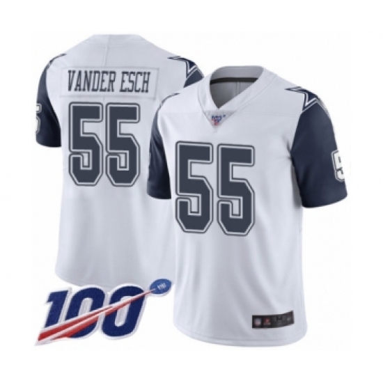 >Men's Dallas Cowboys #55 Leighton Vander Esch Limited White Rush Vapor Untouchable 100th Season Football Jersey