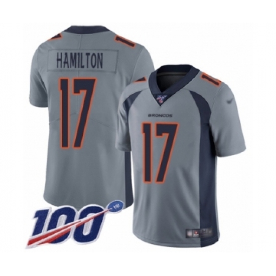 >Men's Denver Broncos #17 DaeSean Hamilton Limited Silver Inverted Legend 100th Season Football Jersey