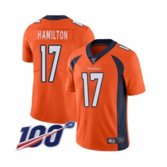 Men's Denver Broncos #17 DaeSean Hamilton Orange Team Color Vapor Untouchable Limited Player 100th Season Football Jersey