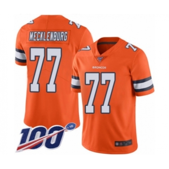 >Men's Denver Broncos #77 Karl Mecklenburg Limited Orange Rush Vapor Untouchable 100th Season Football Jersey