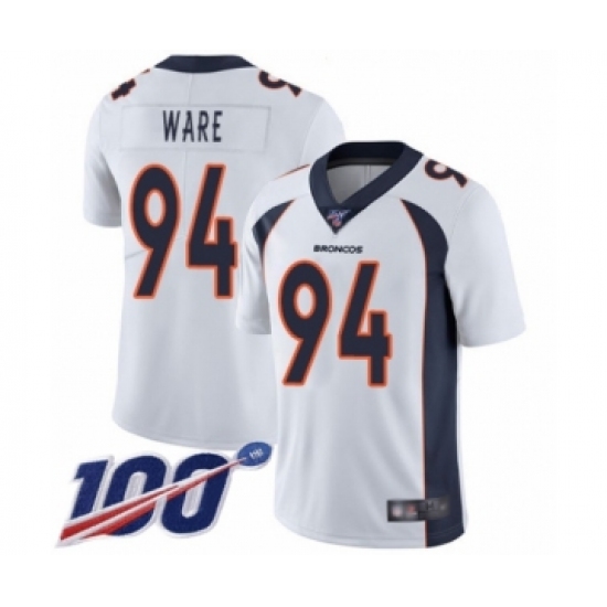 Men's Denver Broncos #94 DeMarcus Ware White Vapor Untouchable Limited Player 100th Season Football Jersey
