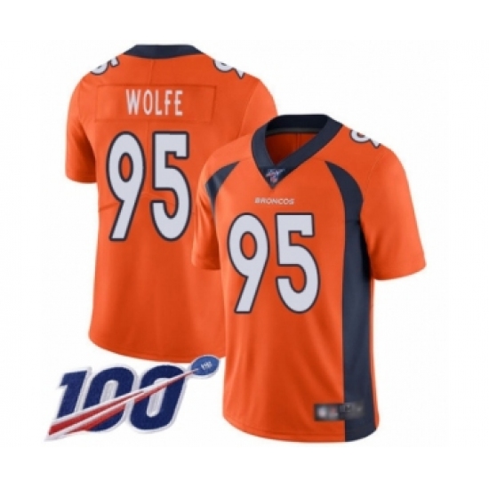 >Men's Denver Broncos #95 Derek Wolfe Orange Team Color Vapor Untouchable Limited Player 100th Season Football Jersey