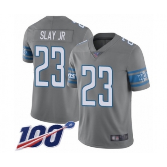 >Men's Detroit Lions #23 Darius Slay Limited Steel Rush Vapor Untouchable 100th Season Football Jersey