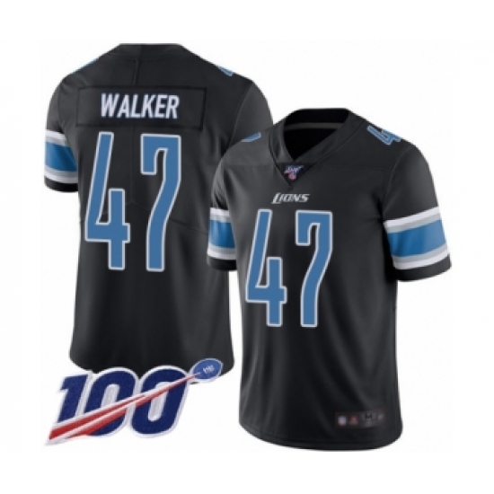 >Men's Detroit Lions #47 Tracy Walker Limited Black Rush Vapor Untouchable 100th Season Football Jersey