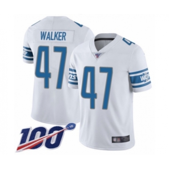 >Men's Detroit Lions #47 Tracy Walker White Vapor Untouchable Limited Player 100th Season Football Jersey