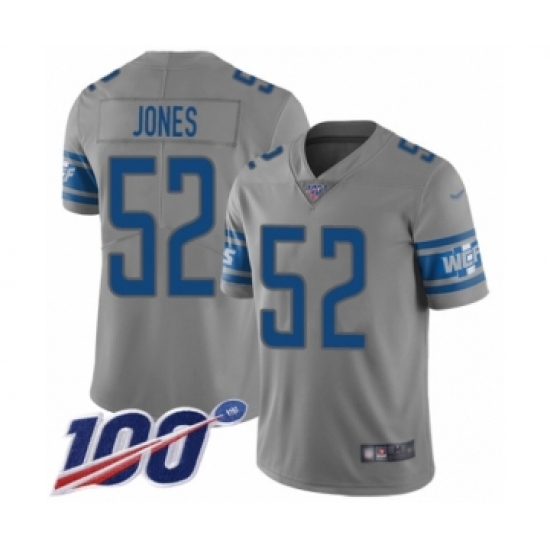 >Men's Detroit Lions #52 Christian Jones Limited Gray Inverted Legend 100th Season Football Jersey