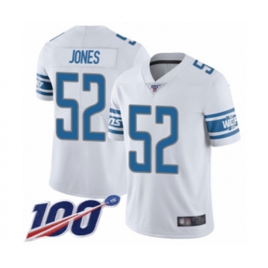 >Men's Detroit Lions #52 Christian Jones White Vapor Untouchable Limited Player 100th Season Football Jersey