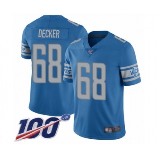 Men's Detroit Lions #68 Taylor Decker Blue Team Color Vapor Untouchable Limited Player 100th Season Football Jersey