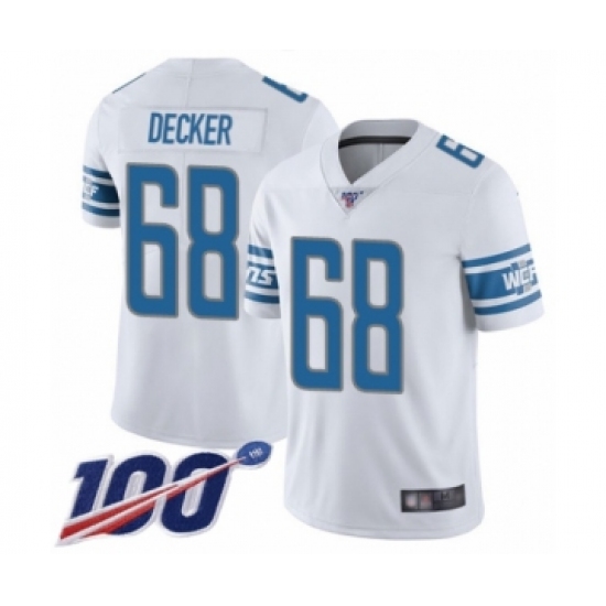 Men's Detroit Lions #68 Taylor Decker White Vapor Untouchable Limited Player 100th Season Football Jersey