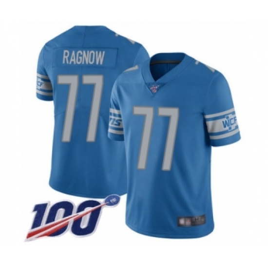 Men's Detroit Lions #77 Frank Ragnow Blue Team Color Vapor Untouchable Limited Player 100th Season Football Jersey