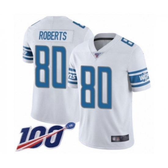 Men's Detroit Lions #80 Michael Roberts White Vapor Untouchable Limited Player 100th Season Football Jersey