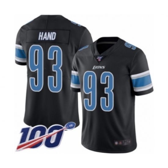 >Men's Detroit Lions #93 Da'Shawn Hand Limited Black Rush Vapor Untouchable 100th Season Football Jersey