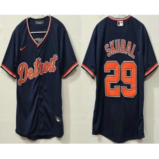 Men's Detroit Tigers #29 Tarik Skubal Navy Cool Base Jersey