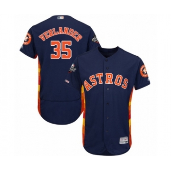 >Men's Houston Astros #35 Justin Verlander Navy Blue Alternate Flex Base Authentic Collection 2019 World Series Bound Baseball Jersey