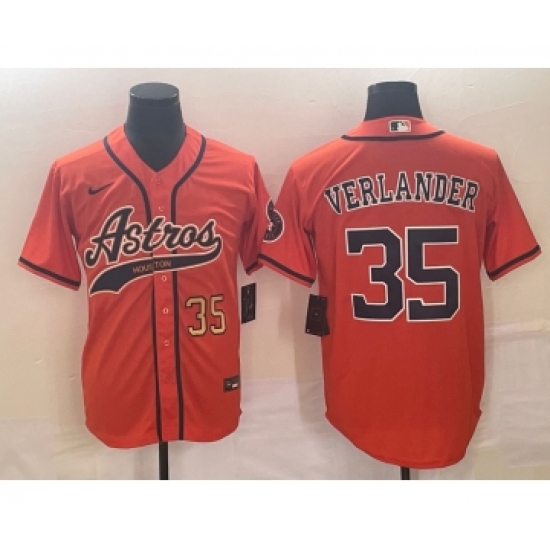 Men's Majestic Houston Astros #35 Justin Verlander Replica Orange Alternate 2018 Gold Program Cool Base MLB Jersey