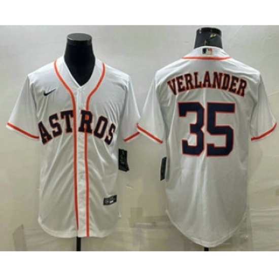 >Men's Houston Astros #35 Justin Verlander White Stitched MLB Cool Base Nike Jersey
