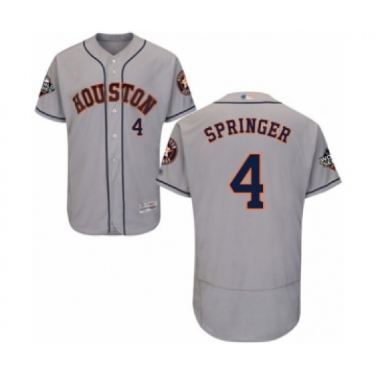 Men's Houston Astros #4 George Springer Grey Road Flex Base Authentic Collection 2019 World Series Bound Baseball Jersey