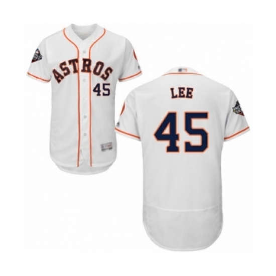 Men's Houston Astros #45 Carlos Lee White Home Flex Base Authentic Collection 2019 World Series Bound Baseball Jersey