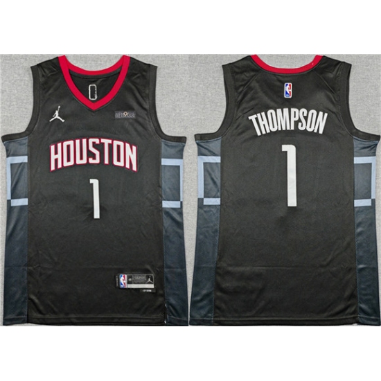 >Men's Houston Rockets #1 Amen Thompson Black Statement Edition Stitched Jersey