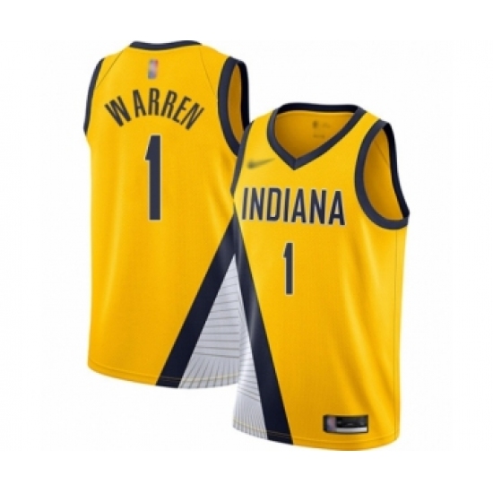 >Men's Indiana Pacers #1 T.J. Warren Authentic Gold Finished Basketball Jersey - Statement Edition