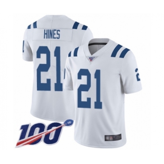 >Men's Indianapolis Colts #21 Nyheim Hines White Vapor Untouchable Limited Player 100th Season Football Jersey