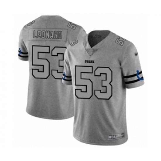 >Men's Indianapolis Colts #53 Darius Leonard Limited Gray Team Logo Gridiron Football Jersey
