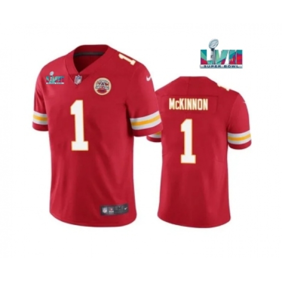 >Men's Kansas City Chiefs #1 Jerick McKinnon Red Super Bowl LVII Patch Vapor Untouchable Limited Stitched Jersey