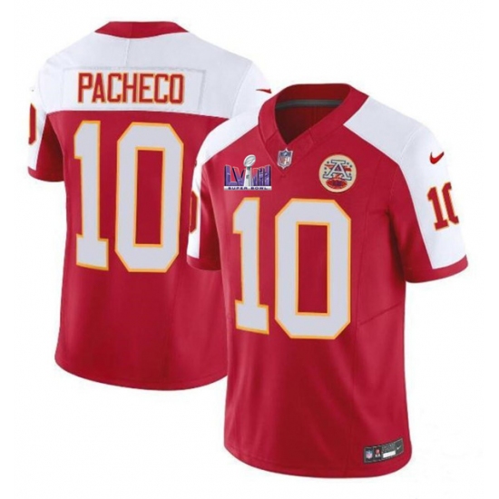 Men's Kansas City Chiefs #10 Isiah Pacheco Red White 2024 F.U.S.E. Super Bowl LVIII Vapor Untouchable Limited Football Stitched Jersey