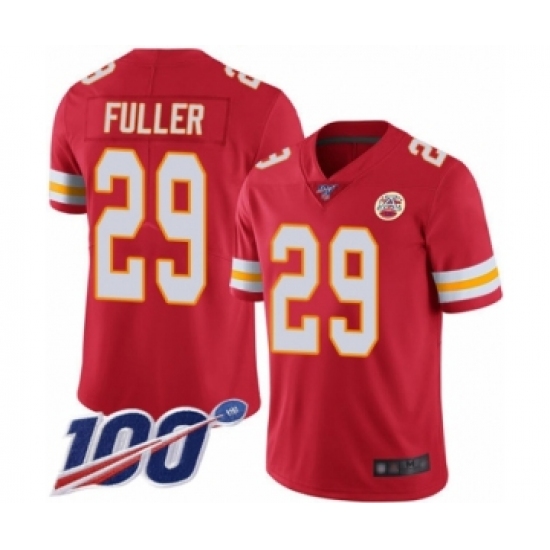 >Men's Kansas City Chiefs #29 Kendall Fuller Red Team Color Vapor Untouchable Limited Player 100th Season Football Jersey