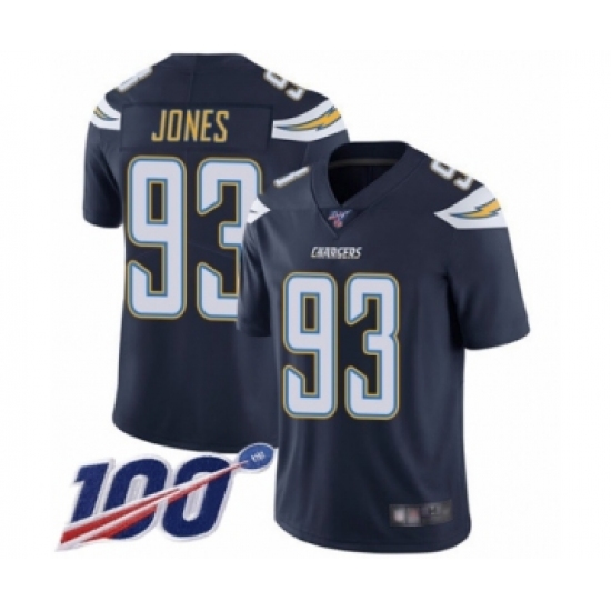 Men's Los Angeles Chargers #93 Justin Jones Navy Blue Team Color Vapor Untouchable Limited Player 100th Season Football Jersey