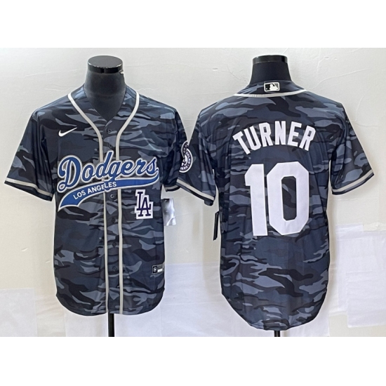 Men's Los Angeles Dodgers #10 Justin Turner Grey Camo Cool Base Stitched Baseball Jersey
