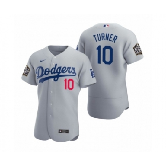 Men's Los Angeles Dodgers #10 Justin Turner Nike Gray 2020 World Series Authentic Jersey